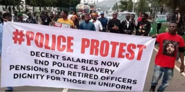 The demonstration, which entered its second day, saw visibly weak and aging officers, some on walking sticks, chanting solidarity songs under the scorching sun while holding placards with inscriptions such as “We served Nigeria, not slavery,” “End CPS now!” and “Police retirees deserve dignity, not death.”